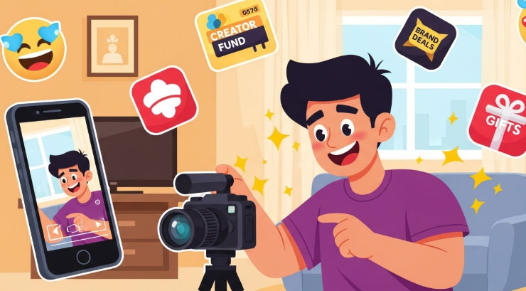 • Multiple income streams: creator fund, brand deals, live gifts.